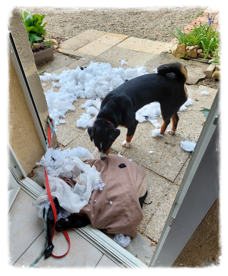Ook voor de honden is het nog een beetje zoeken. Normaal slapen ze in onze garage, maar hier hebben we geen garage of schuur dus als wij naar de winkels/bank of waar ook heen gaan, moeten ze samen in huis blijven. Met Rascha gaat dat prima, die is wat ouder en gedraagt zich wel. Maar Maud onderneemt wel graag wat. Zo heeft hij al 2x zijn riem doorgebeten en nu had hij de vitrage van de ramen afgetrokken en aan flarden gescheurd 🙈 dus dat moeten we straks nog even gaan opbiechten bij de eigenaar...