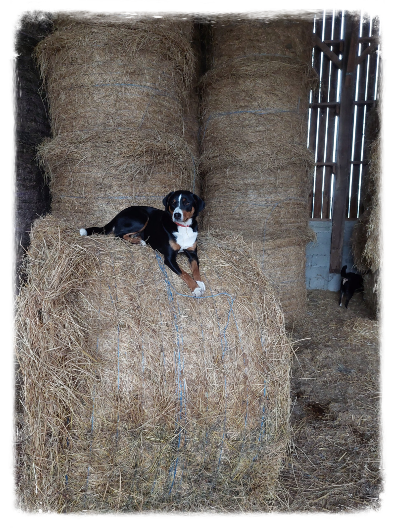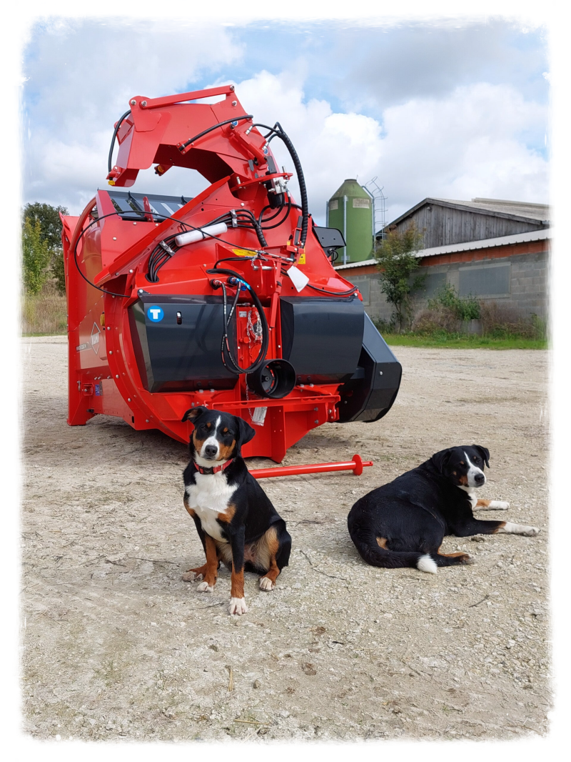 Ondertussen wij zijn nog volop bezig met de 'najaarschoonmaak' 😉. We hebben na een hectische beginperiode nu gelukkig een rustigere periode. We hebben wel een half jaar nodig gehad om alles wat op orde te krijgen. Ons bedrijf draait nu ongeveer zoals we graag zouden willen. Er was erg veel handwerk op ons bedrijf en de hoeveelheid werk die er was op ons bedrijf viel ons met name tijdens de warme zomerdagen wel tegen. Daarom hebben een nieuwe machine gekocht, een stroblazer en voerverdeler welke ons het werk een stuk gemakkelijker maakt. Hier wordt ons werk een stuk gemakkelijker van en geeft ons meer tijd en plezier in ons werk. Zoals u ziet zijn de honden er ook erg blij mee, net als wij 😊