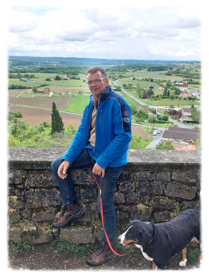 Wanneer je bij ons achter de stal uitkijkt zie je in de verte een dorpje liggen op een heuvel met een toren. Daar zijn we vandaag even wezen kijken. Het dorpje bleek Monbahus te heten en je kon er de uitkijktoren beklimmen. Dus dat hebben we even gedaan en na even zoeken hadden we onze boerderij ook in her vizier. Erg mooi om zo even over het landschap heen te kijken.